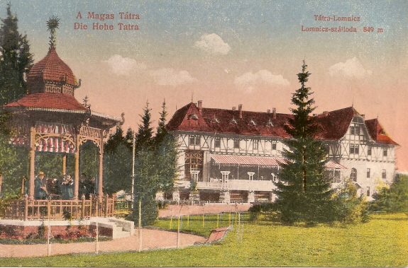 A Majunke Gedeon által tervezett Lomnic szálló 1893-ban épült fel, a lőcsi Szepesi Hitelbank finanszírozásával. A három szintes, 28 szobás épület étteremmel és kávéházzal várta a vendégeket. Átadása után itt helyezték el a fürdőigazgatóság irodáit, valamint a postahivatalt. Amikor 1937-ben átépítették a szálló teraszát, alatta kozmetikai-, textil-, játék- és ajándéküzletet, fodrászatot, majd később bor- és élelmiszerboltot alakítottak ki.