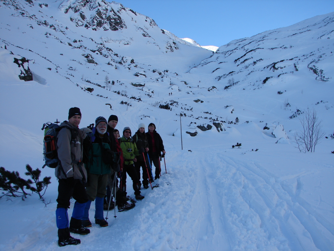 Napsütéses, hideg időt jeleztek az időjósok, így hát január 29-én, vasárnap reggel felkerekedtünk, és hajnali 5-kor elindultunk a Magas-Tátrába, pontosabban a Nagy-Tarpataki-völgybe. Elsődleges célunk a Hosszú-tavi menedékház volt, azzal az opcióval, hogy amennyiben az idő és a körülmények lehetővé teszik, megkíséreljük a feljutást a Rovátkára, vagy pedig szétnézünk a völgy középső részén. Négyfős csapatunk Balassagyarmatról indult, Ótátrafüreden beszéltünk meg találkozót miskolci barátainkkal, majd a Tarajkán csatlakozott hozzánk Poprádon élő barátunk is, így valamivel 9 óra előtt nyolcfős csapattal vágtunk neki a Nagy-Tarpataki-völgynek.