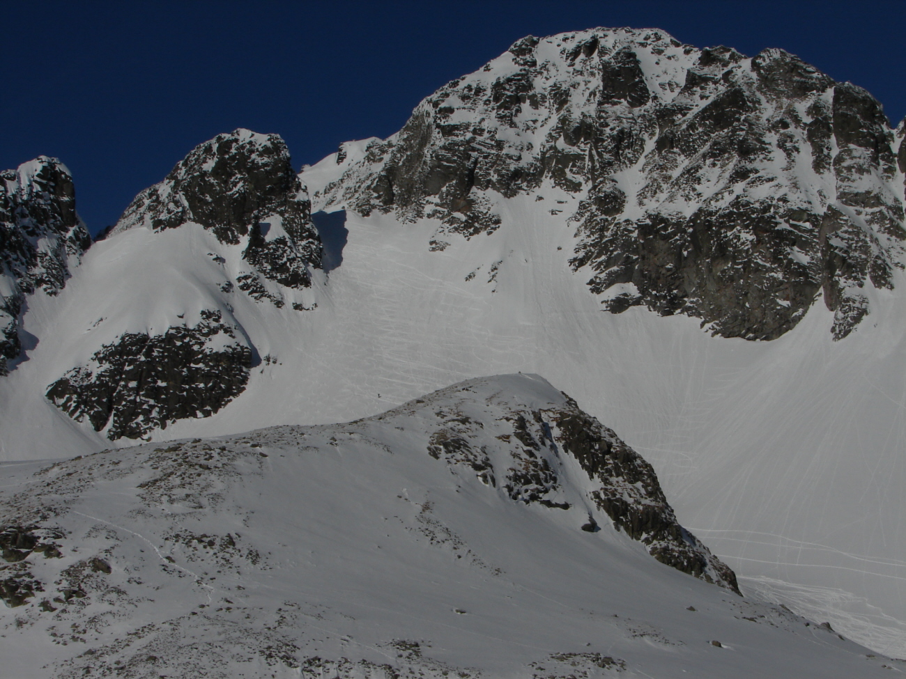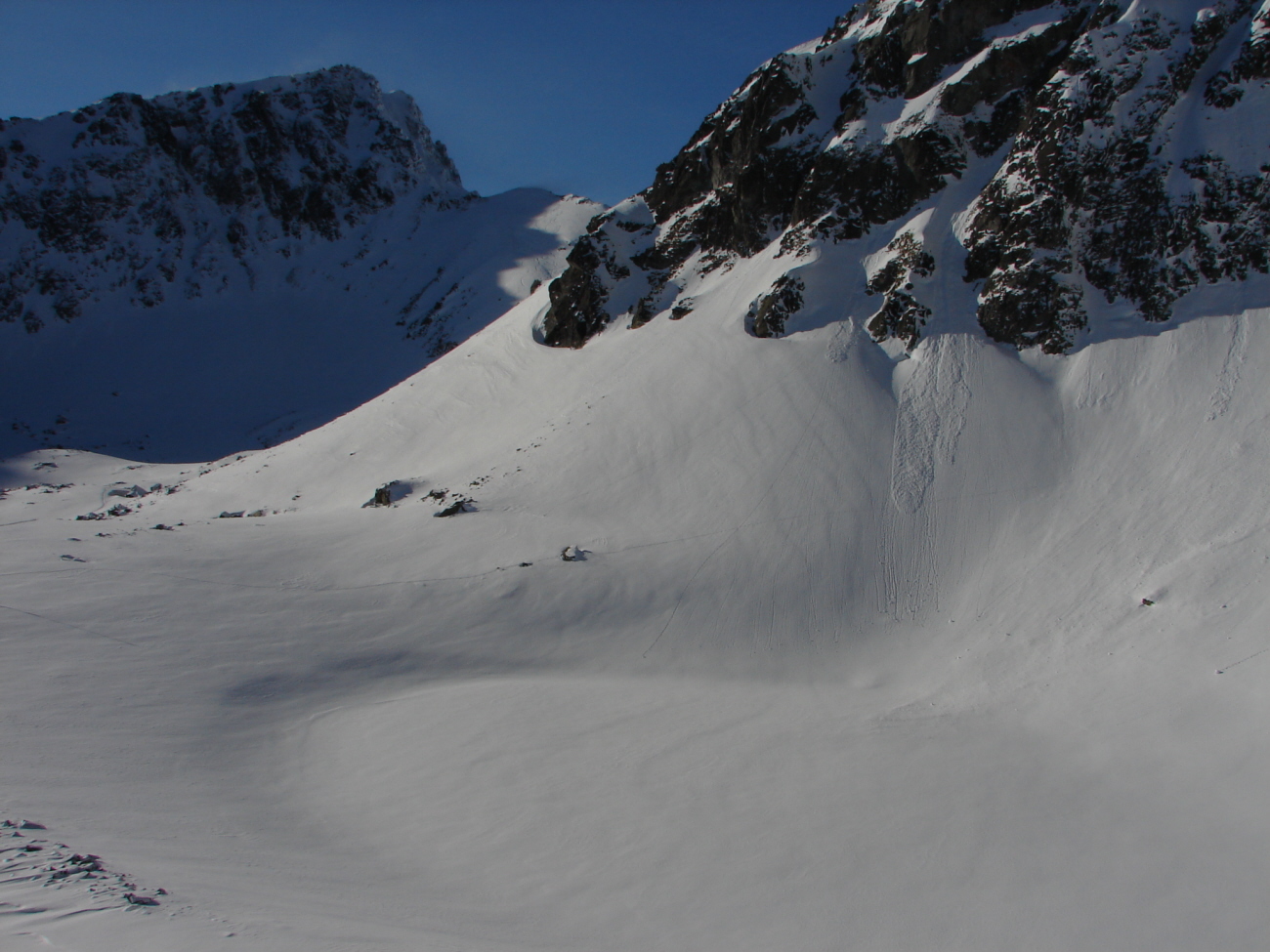 A Kanalastorma-tóhoz vezető meredek emelkedőn is egészen jó nyomok vezettek fölfelé, a letaposott, néhol jeges hó miatt azonban az óvatosabbak hátizsákjából előkerültek a hágóvasak is. Az egész útvonal egyetlen napos szakasza közvetlenül a menedékház előtt, mintegy 10 méteres szakaszon várt minket, hogy aztán a házhoz az ott mindennapos jeges szélben érkezzünk meg, néhány perccel déli 12 óra előtt.