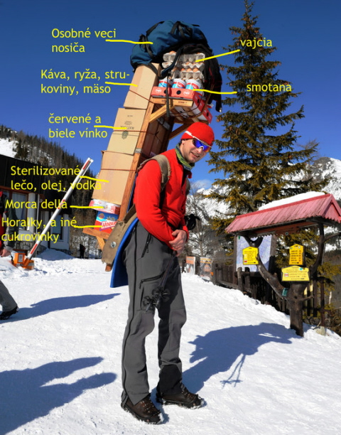 majd fel a Zamkovszky-menedékházba. Pakolás a hordkeretre, majd indulás.