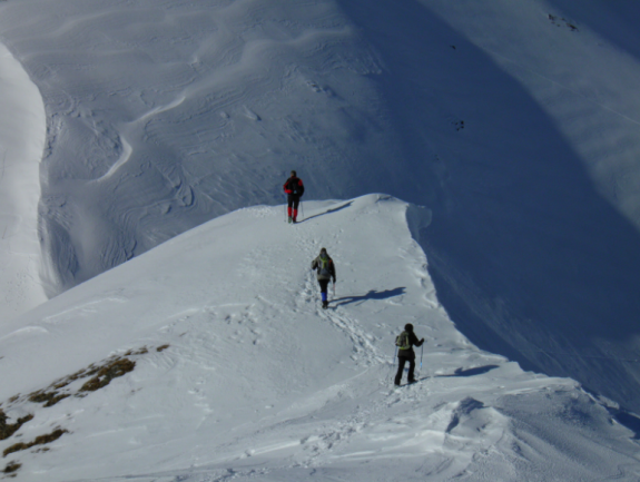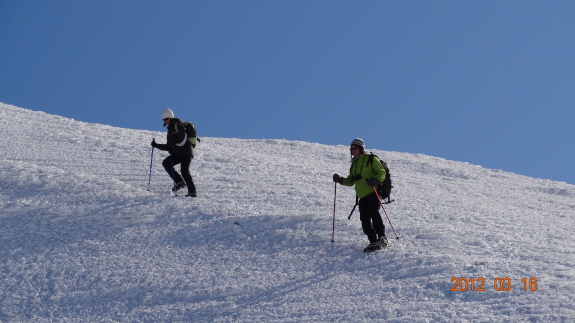 meredekebbé váló emelkedőn jól tartott a hó, csak nagyon ritkán szakadt be