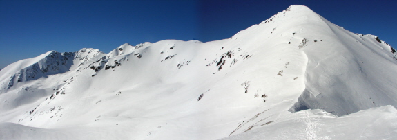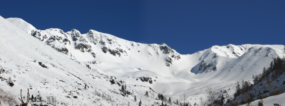 (Hrubá kopa) és a Három-púp (Tri kopy) havas-sziklás gerincét, valamint a