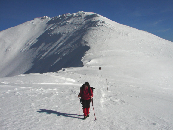 még ránk a Chopokig. Innen ismét felfelé vezetett a hóba szúrt karókkal jól