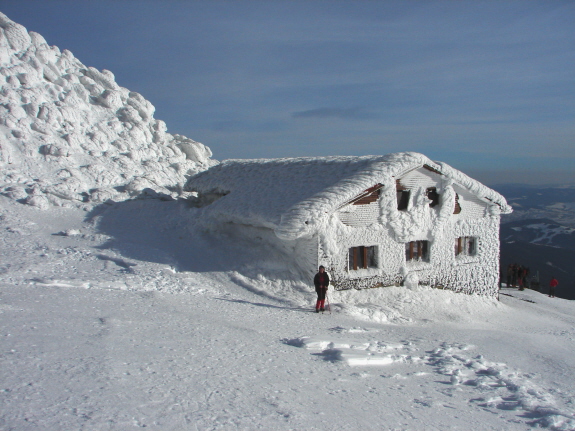 csúszással, délután 3 órakor érkeztünk meg a Chopok alatt lévő Kő menedékházhoz