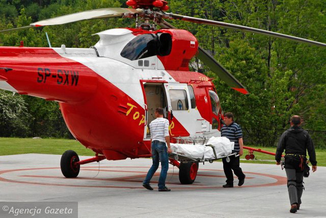 találták meg, majd helikopterrel a zakopanei kórházba szállították. A férfi