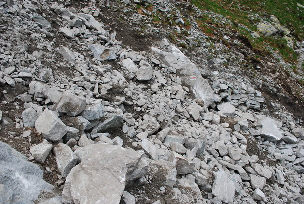 vezető turistautat, Az utat megrongáló kőlavina a hegyekben bármikor előforduló
