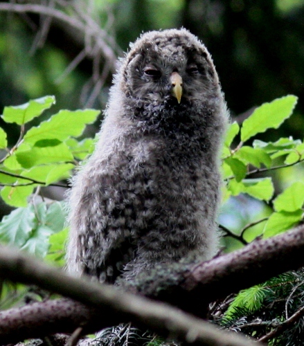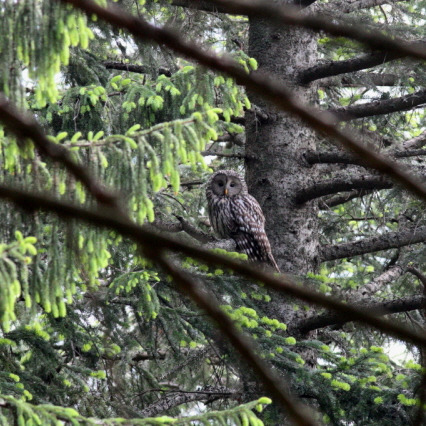 faodúban lévő fészket elhagyva egy hatalmas fenyő ágán ült. Az uráli bagoly
