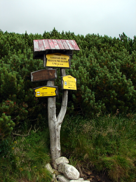 Furkota-patak (Furkotský potok) mentén tűlevelű erdőkben haladunk. Később az