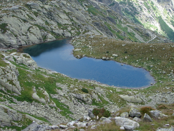 magunk alatt a Varangyos-tavat (1886 m), amelyet egyszerű turisták csak erről a