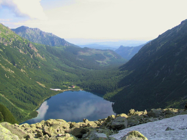 büszkeségei a hatalmas gleccsertavak, a Halastó (Morskie Oko, 1395 m, ebből