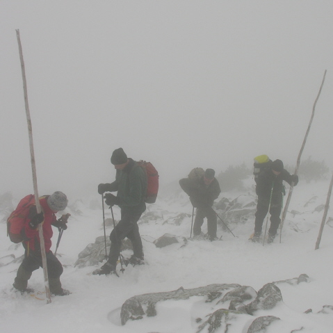 Az erdő felső határától ugyancsak póznák jelzik a Zöld-tavi menedékházhoz