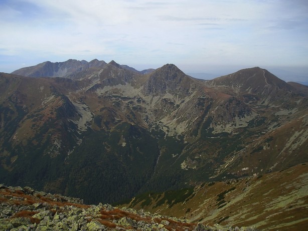 Balról a Baranyec (2178 m), Három-púp (2136 m), Placslivó (2124 m), Hegyes-Rohács (2087 m), Volovec (2063 m).