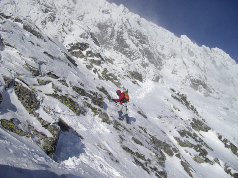 az ereszkedést a Zöld-tó irányába. A meredek hó lejtőn óvatosan és