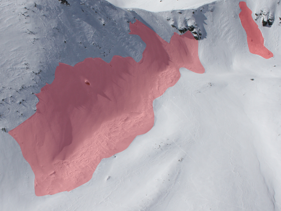 meredek (30 foknál meredekebb) lejtőn spontán kis és közepes lavinák, egyes
