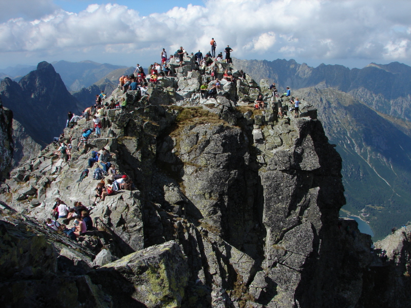 álltunk a Tengerszem-csúcs 2499 m-es ormán. Hatalmas tömeg fogadott mind a