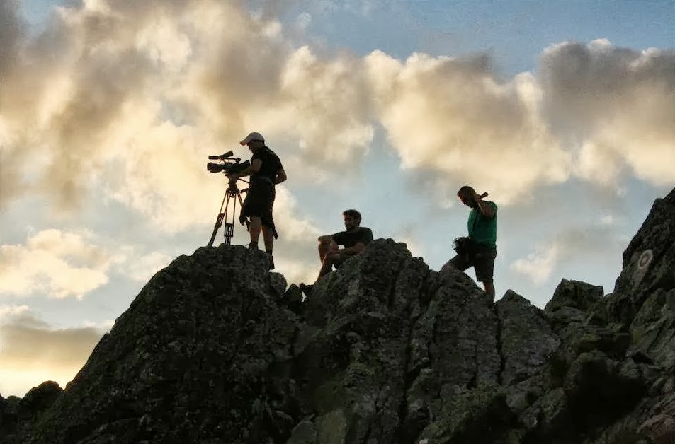 Itt rövid pihenőt tartva nekivágtunk az egyre meredekebb kaptatónak, mely már emlékeztettek minket arra, hogy a Magas-Tátrában túrázunk. A völgytől dél-nyugatra eső Hrubó-gerincen a Nefcer-torony, a Triumetál, a Csorbai-csúcs és a Hlinszka-torony figyelték utunkat. Erős kaptató várt ránk a völgy végén, felkapaszkodtunk a Felső-Koprova-hágóra, ahonnan már láttuk a félórányira lévő célunkat: a Koprova-csúcsot. Pontos időzítésünknek köszönhetően naplementében csodálhattuk meg a környező csúcsokat, völgyeket és tavakat. Láttuk a Szmrecsinyi-völgyben fekvő tavakat, a fölöttük húzódó gerincet, mely ma a Szlovák-Lengyel határ része. Távolban a lengyel oldalon felsejlett a Giewont hatalmas tömege és a híres-hírhedt Sas út. Észak-nyugatra a Nagy-Menguszfalvi-csúcsban gyönyörködhettünk, a tövében lévő Felső-Menguszfalvi-csorbában pedig a távoli Fehér-tavi-csúcs volt megfigyelhető. Háttérben a Jég-völgyi-csúcsra és a Lomnici-csúcsra ismerhettünk rá. Csodálatos látvány volt a Menguszfalvi-völgyet és a fölötte elhelyezkedő csúcsokat így látni, narancsban pompázott az Oszterva, a Tompa-hegy, a Kopki, a Tátra-csúcs, és a Róth Márton-csúcs. Láthattuk tavalyi forgatásunk egyik helyszínét a Tengerszem-csúcsot, és az alattunk elterülő 53 méter mély Nagy-Hincó-tavat. Ez a mese nem tartott sokáig, pillanatok alatt ránk sötétedett, elővettük a fejlámpánkat és leereszkedtünk a Nagy-Hincó-tó mellé, majd tovább a Menguszfalvi-völgybe egészen a Poprádi-tóig.