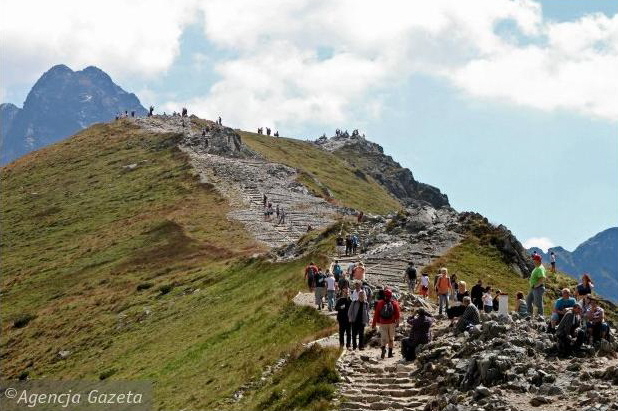 nem csak a jegypénztáraknál, de a turistautakon is, pl. a Giewont csúcskupolája