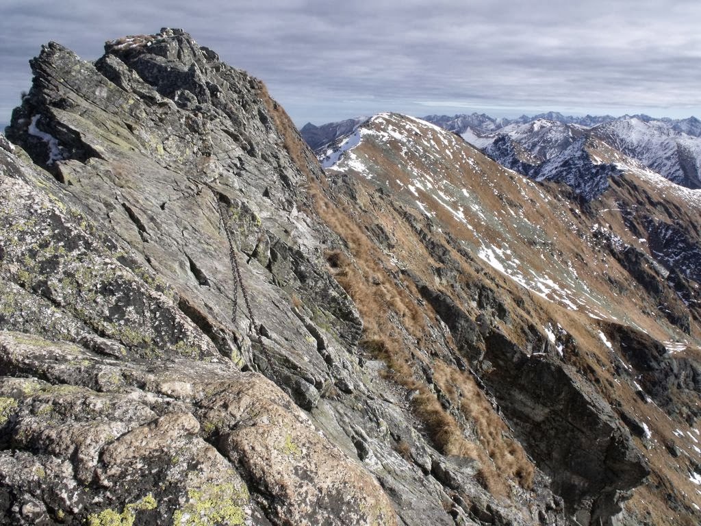 főgerincen tovább, Hrubá Kopa (2166 m), 1 km, vaslánc a Baníkovról lefelé. Hrubá Kopa után Tri Kopy (2136 m – a