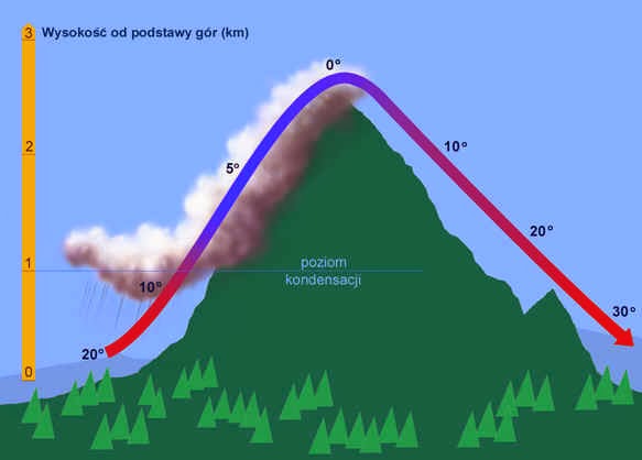 ezáltal relatív nedvessége jelentősen lecsökken. Jelenlétére a hegységgel