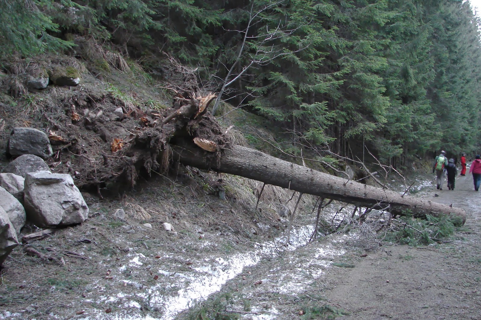kb. 600 fa dőlt ki. A vihar a nemzeti park területén leginkább a Chochołówi- és