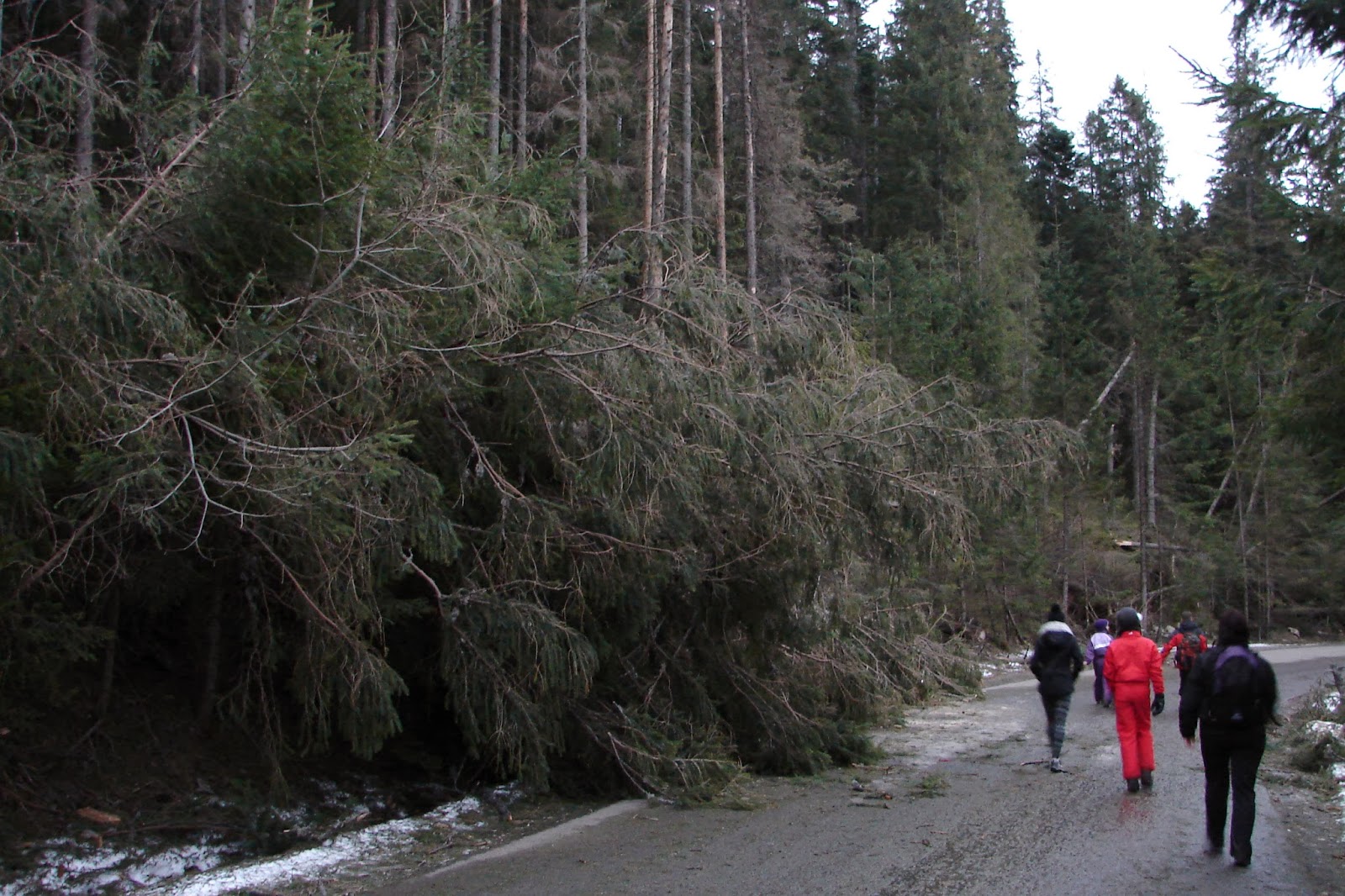 méterenként 1 fa dőlt ki, a Murowaniec menedékház közelében kb. 15, folyik az