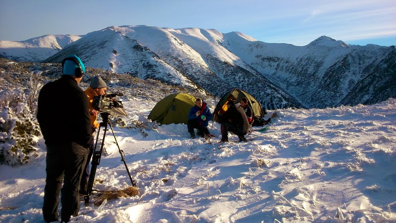 helyeken felvételek készülnek. Egyúttal mélyül a hó is, sokszor térdig kell