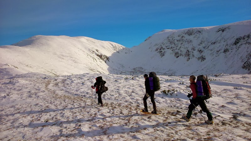 Itt már előkerülnek a tegnap csak nehezékként használt hótalpak, én pedig