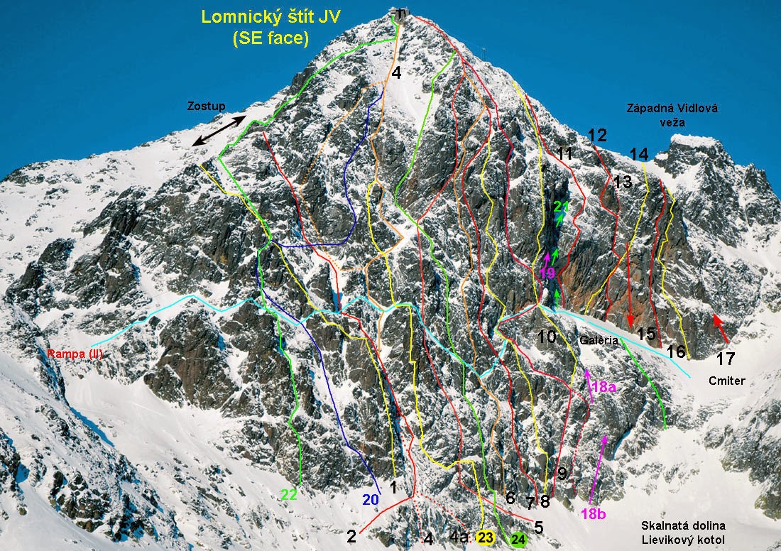 közben a csúcs délkeleti falán, a Motyka-úton (a mellékelt fotón 4-el jelölve) egy esés következtében megsérül a