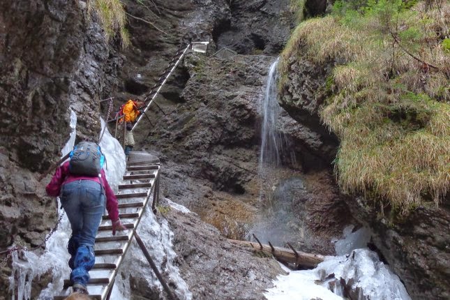 vaslétrákon. A szurdok oldalán lezúgó fagyott vízesések viszont a meleg