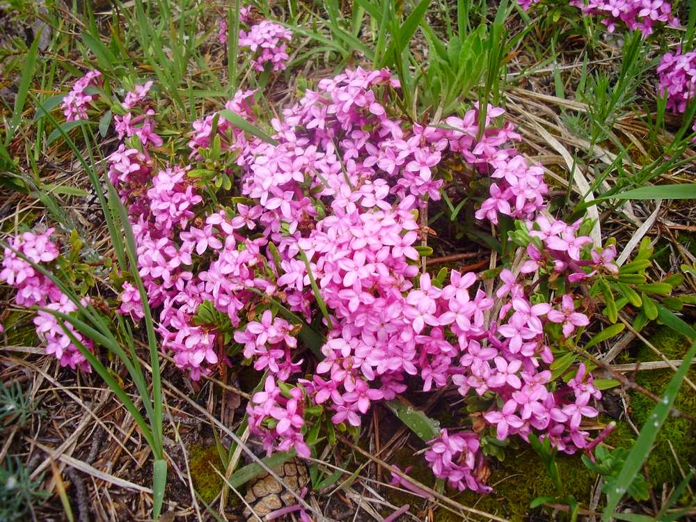 (Daphne cneorum). A virág édes, mámorító illata sok helyen érezhető ebben az