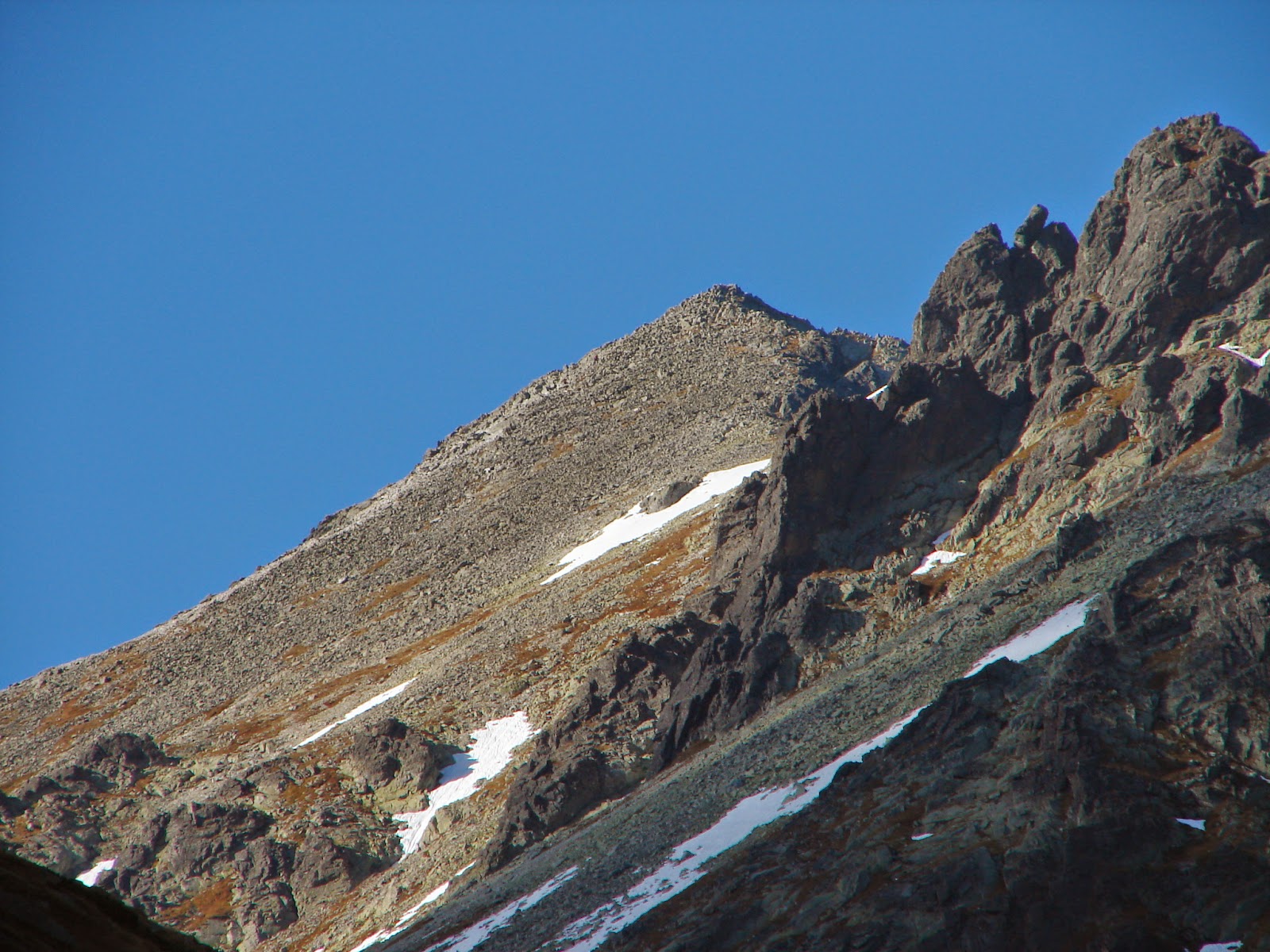 csúcsára vezető szokásos hegymászó útvonal, a Gerlachfalvi-próba. Tovább