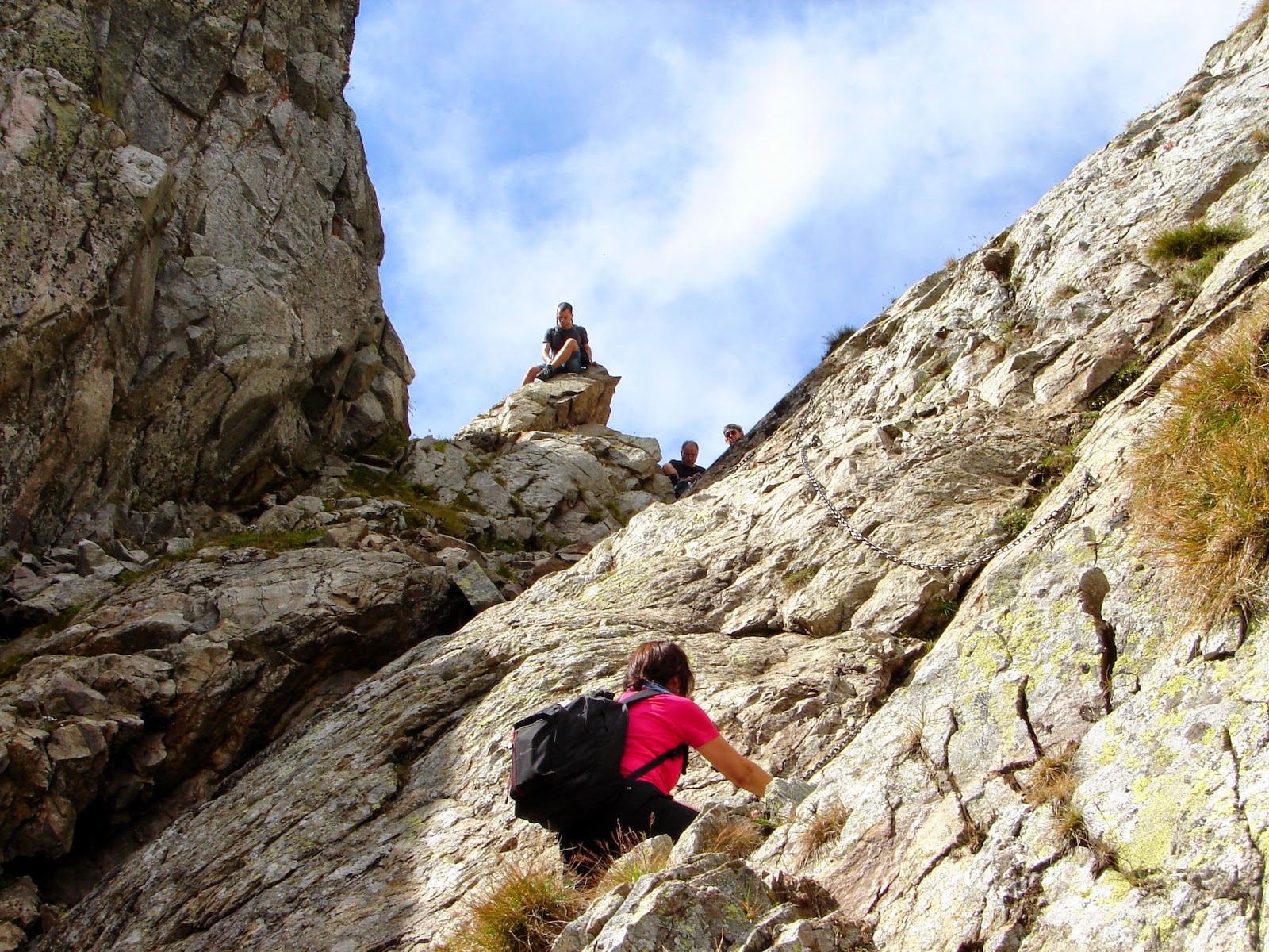 használva, a fémhágcsókon felmászva lehet feljutni a hágóba. A láncos szakasz