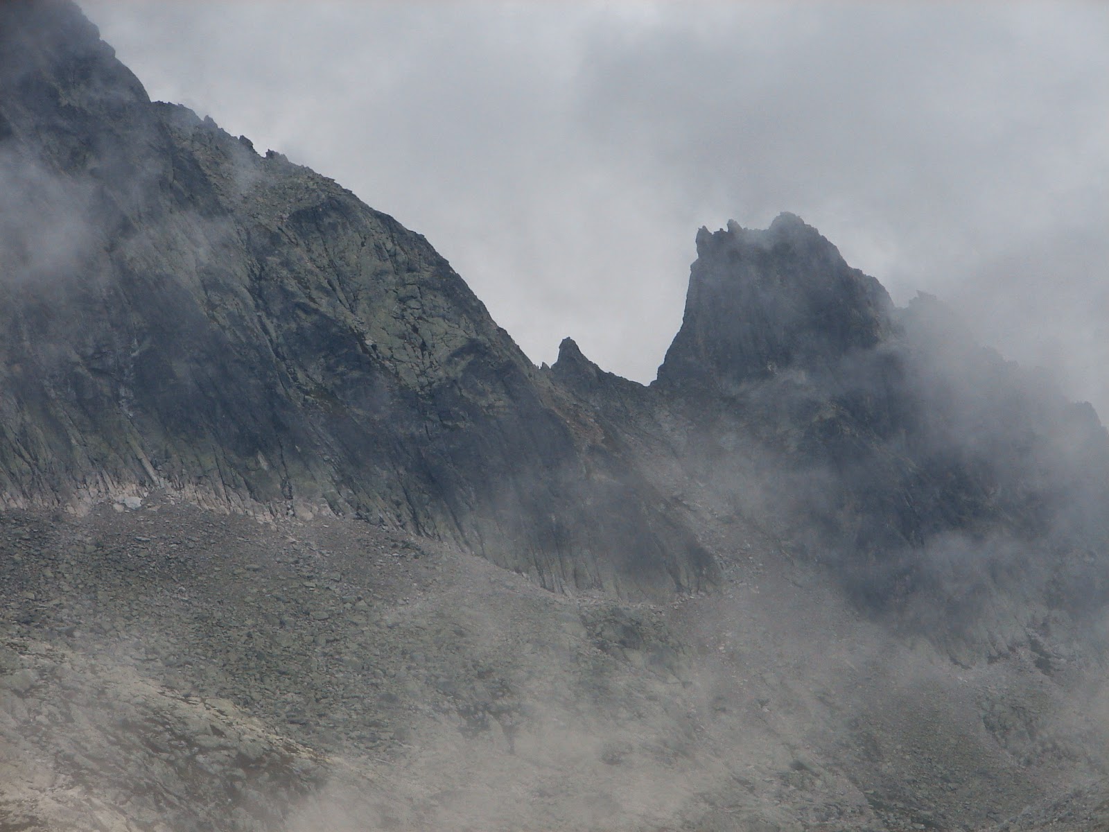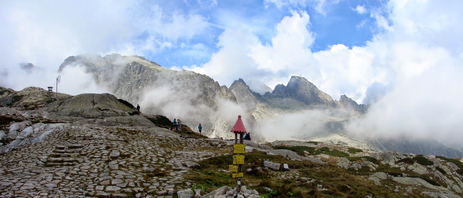 felhők, a hágóból a Lomnici-csúcs irányába hátranézve semmit sem láttunk, a