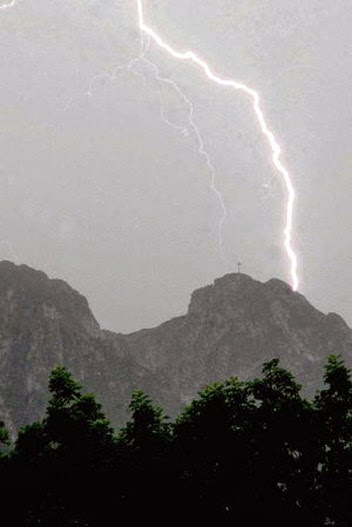 kb. 20 méterrel a csúcs alatt érte a villámcsapás, melynek következtében