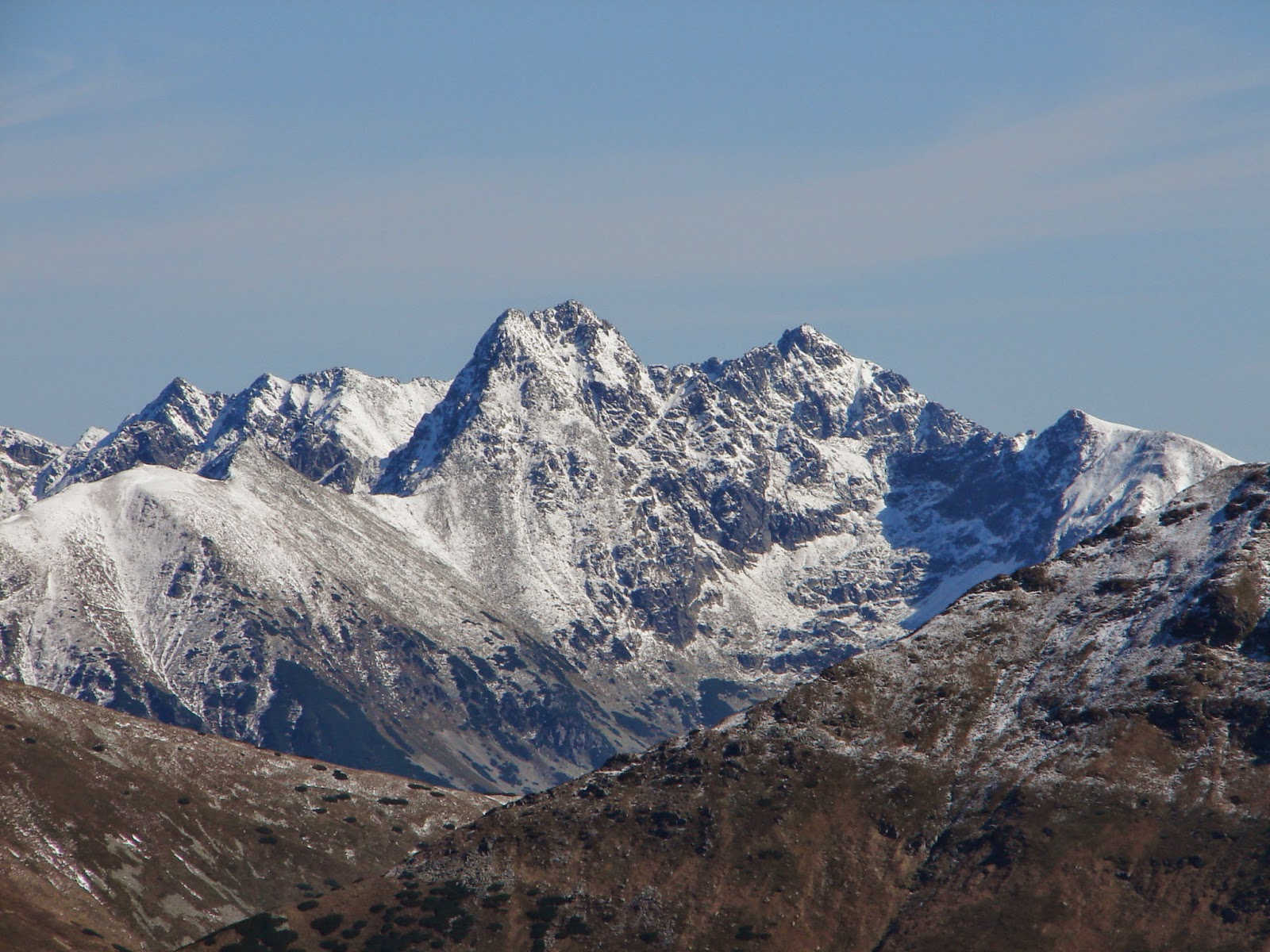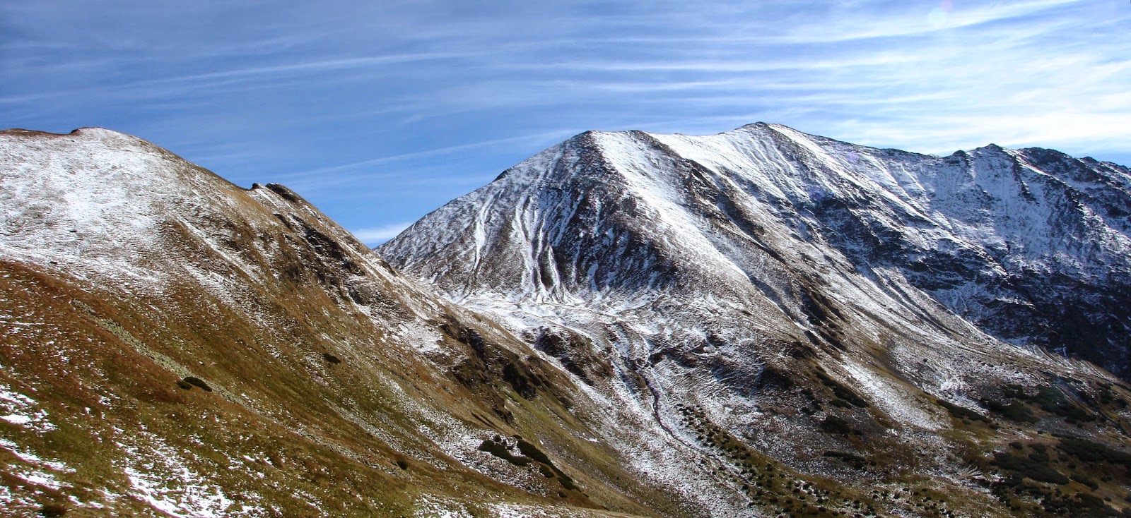 Gábor-hágót és a Sebes-hágót összekötő Liliom-tornyok hóval meghintett gerince.