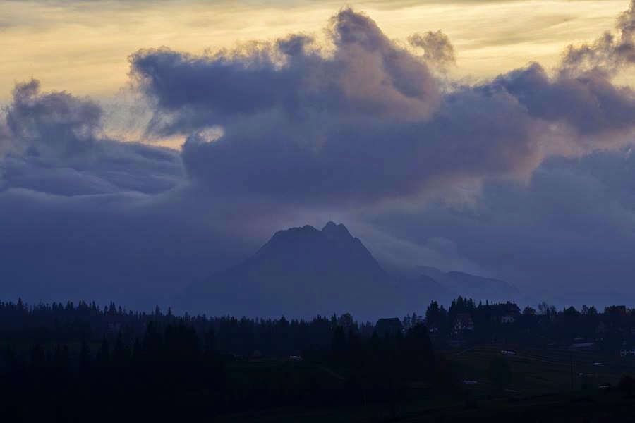 fővárosát a fölé magasodó Giewont északi fala nélkül. A hegytömb alakját már