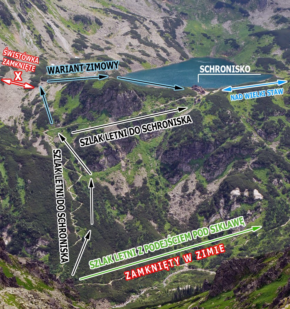 azonban télen az Alsó-halom (Niźnia Kopą) alatt azonban nem fordul jobbra,