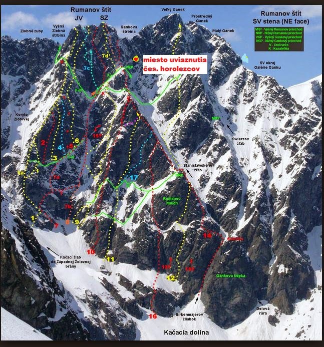 Ruman-csúcs (Rumanov štít) északi falán. Mászásuk közben azonban január 2-án, pénteken