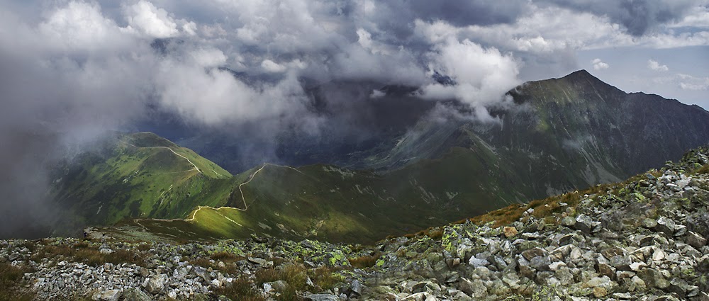 (Wołowiec, 2063 m), a Háromnapos-hegyről (Trzydniowiański Wierch), az Ornak