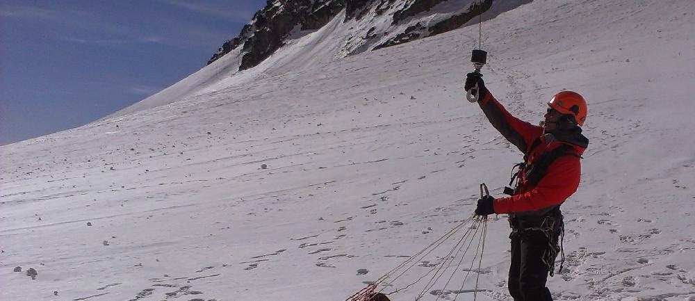 hegyimentő ereszkedett le a megtalált hegymászókhoz.