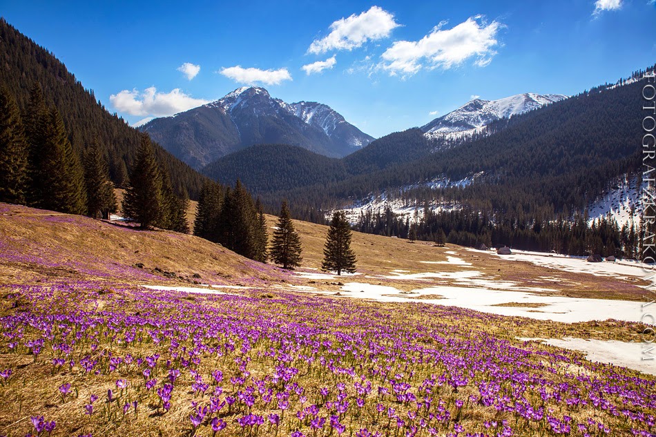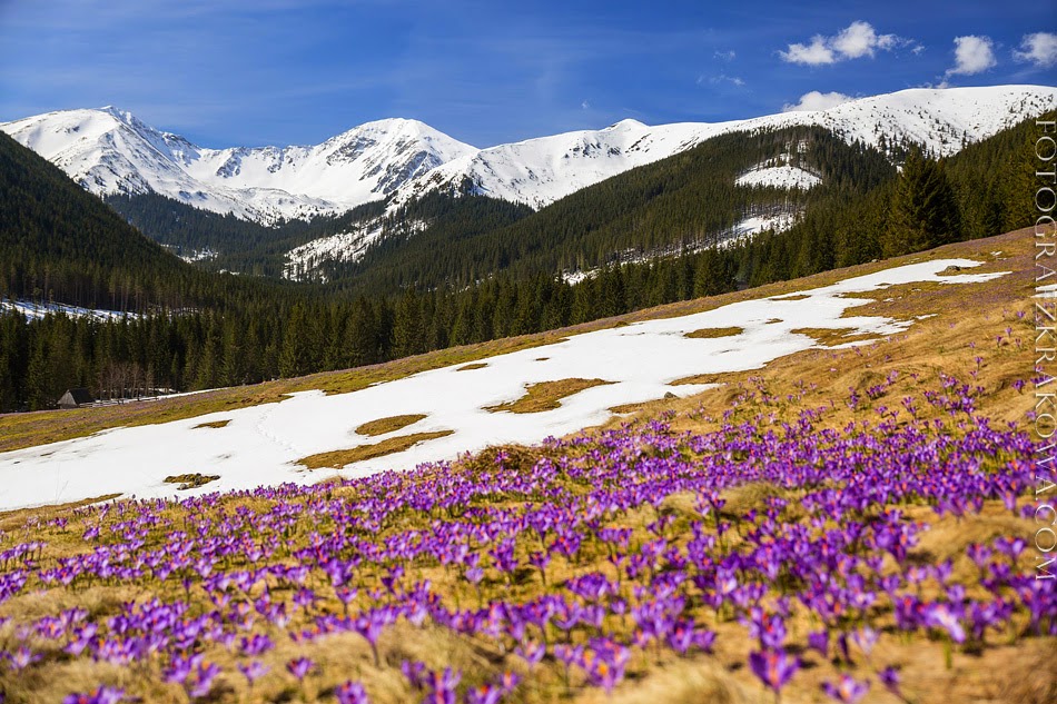 Chochołowi-völgyben, a hatalmas Chochołowi-tisztáson láthatók, amelyet az év