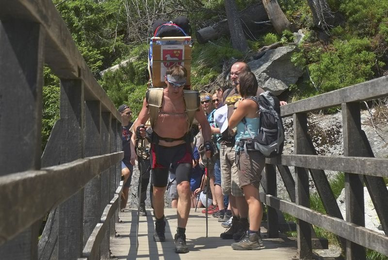 hőségben, a sokszor egyenetlen terepen 100 kg-os terhet cipelő férfiak