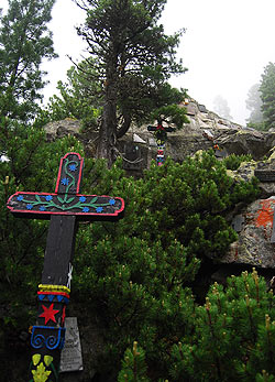 emléktáblákkal és faragott fakeresztekkel emlékeznek azokra a hegymászókra,