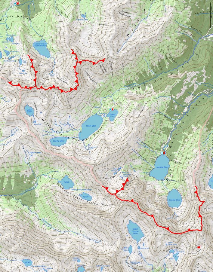 valamint a Zawrattól a Nyugati-Madár-csorbáig (Małą Buczynową Przełączka).
