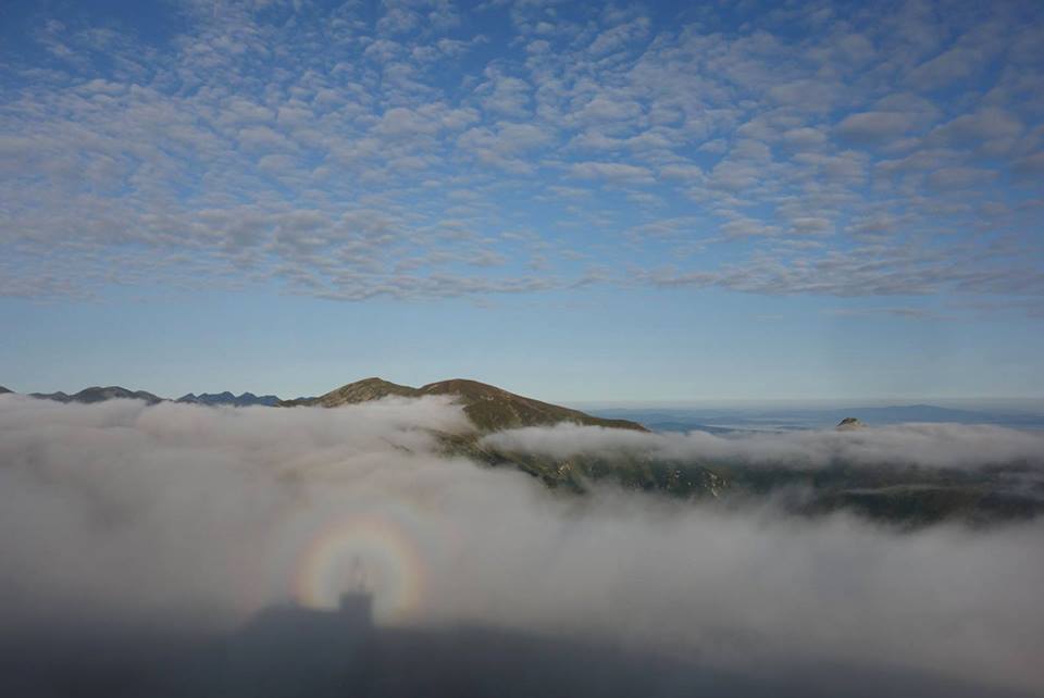 szivárvány színeivel körülvett árnyékunkat látni a felhőben magunk alatt. A