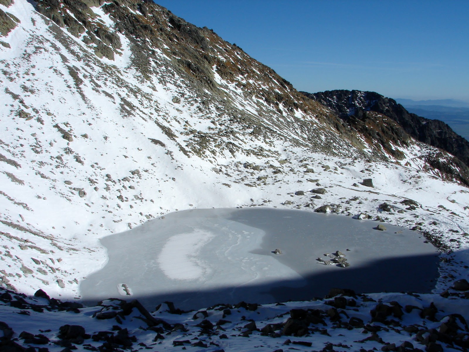 a Kék-tavacskához (Modré pleso, 2157 m). A kis tó felületét már jég borította,