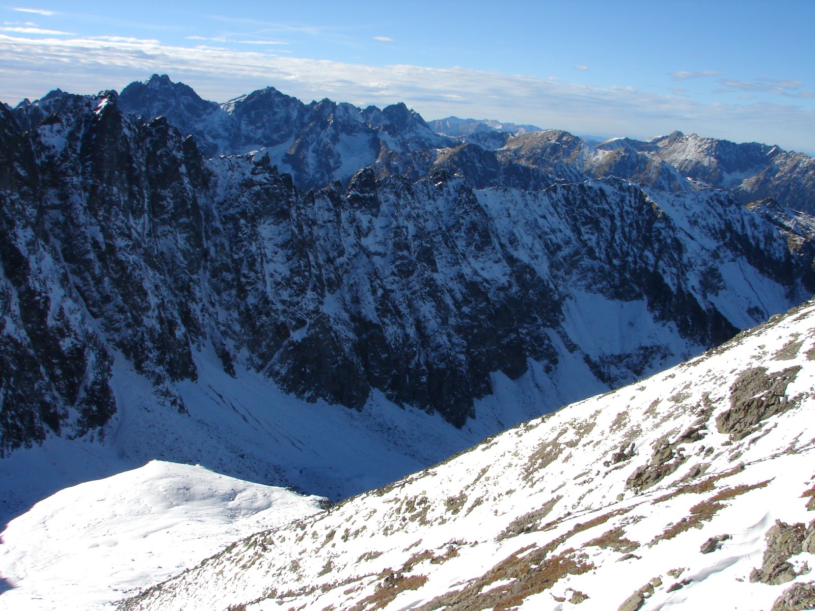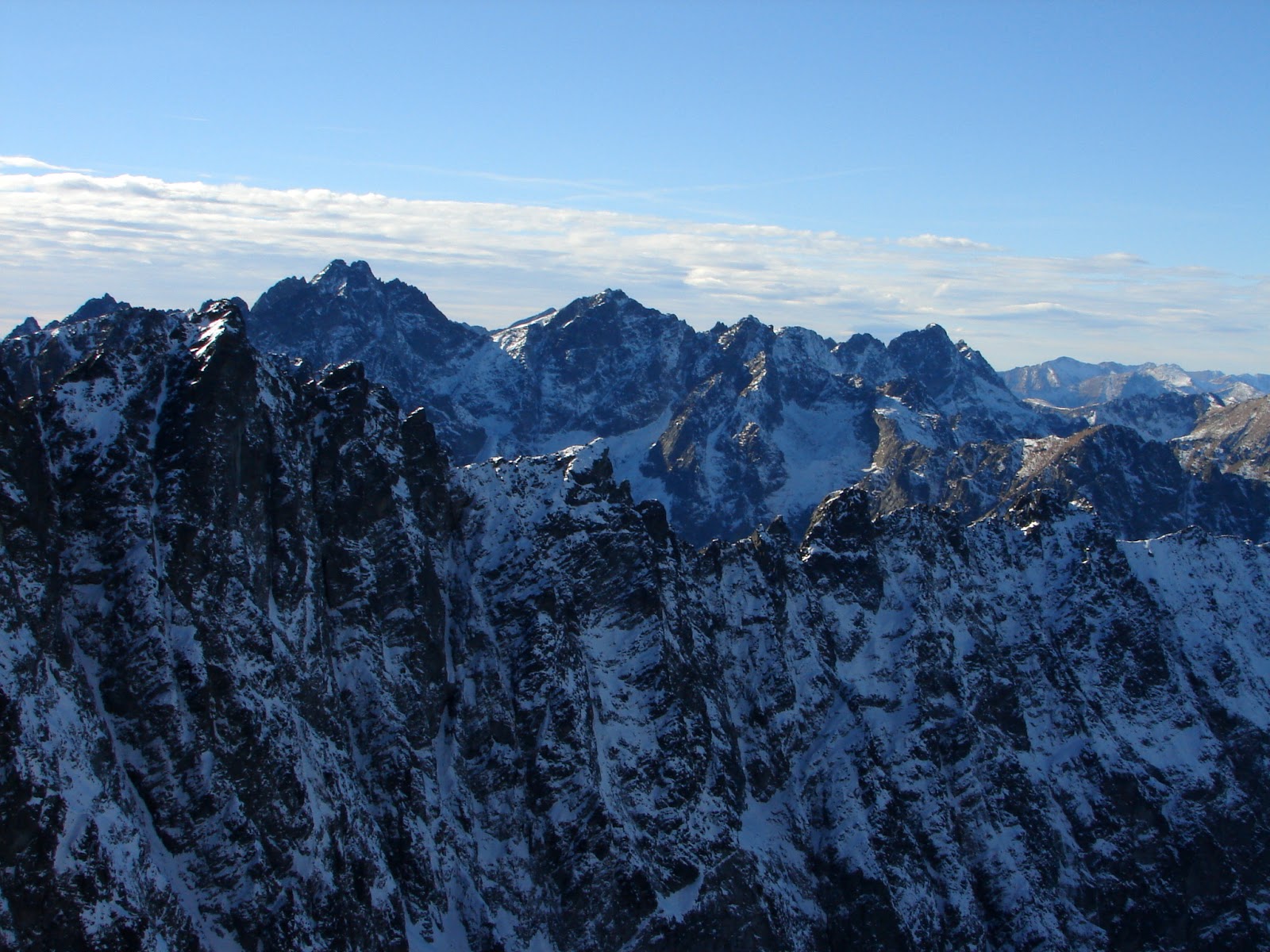 Jávor-gerincet, a mögötte emelkedő ismert csúcsokat a Gerlachfalvi-csúcstól a