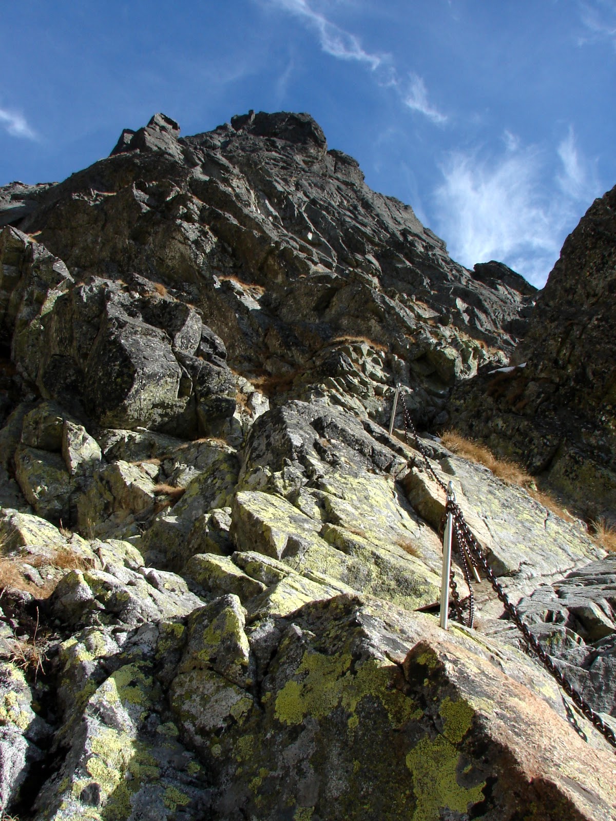 vezető utolsó, láncokkal biztosított emelkedőnek. Feljebb aztán elfogytak a