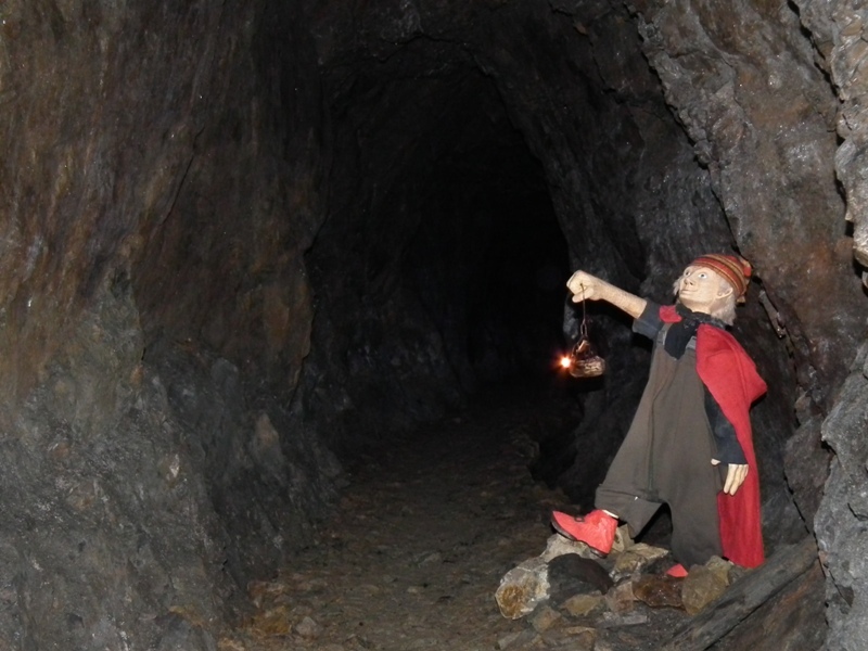 méterre a bejárattól néhány bányamanó fogadja a látogatókat, akik megvilágítják