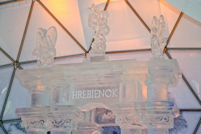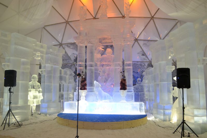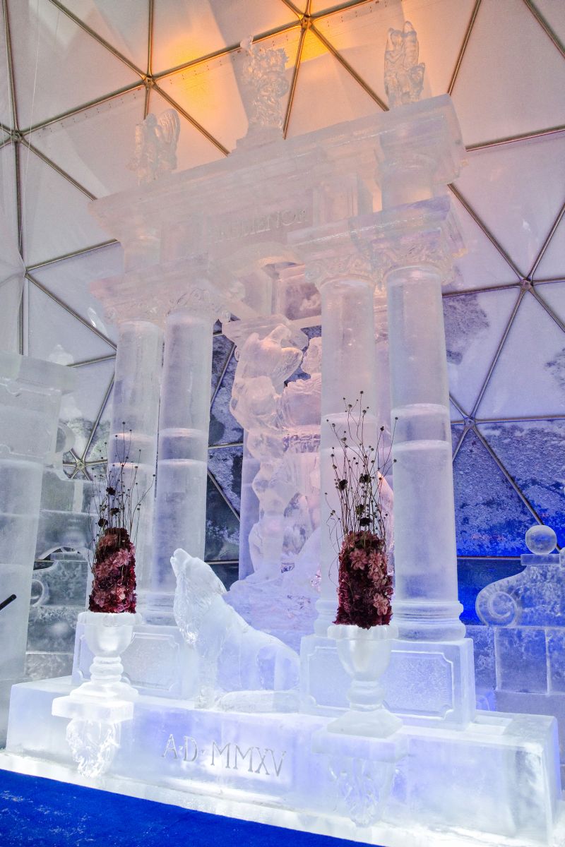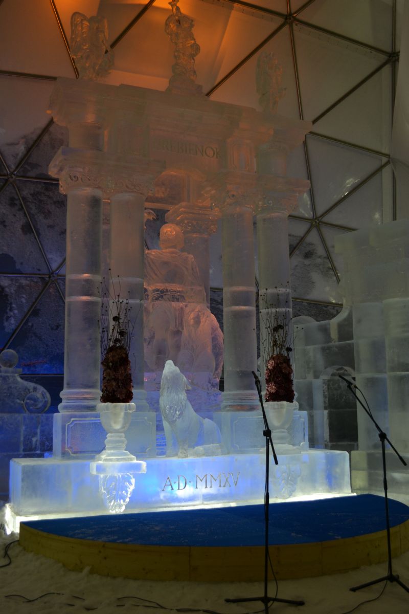 évben a jégtemplom különlegessége a jégbe ágyazott színes ólomüveg volt,